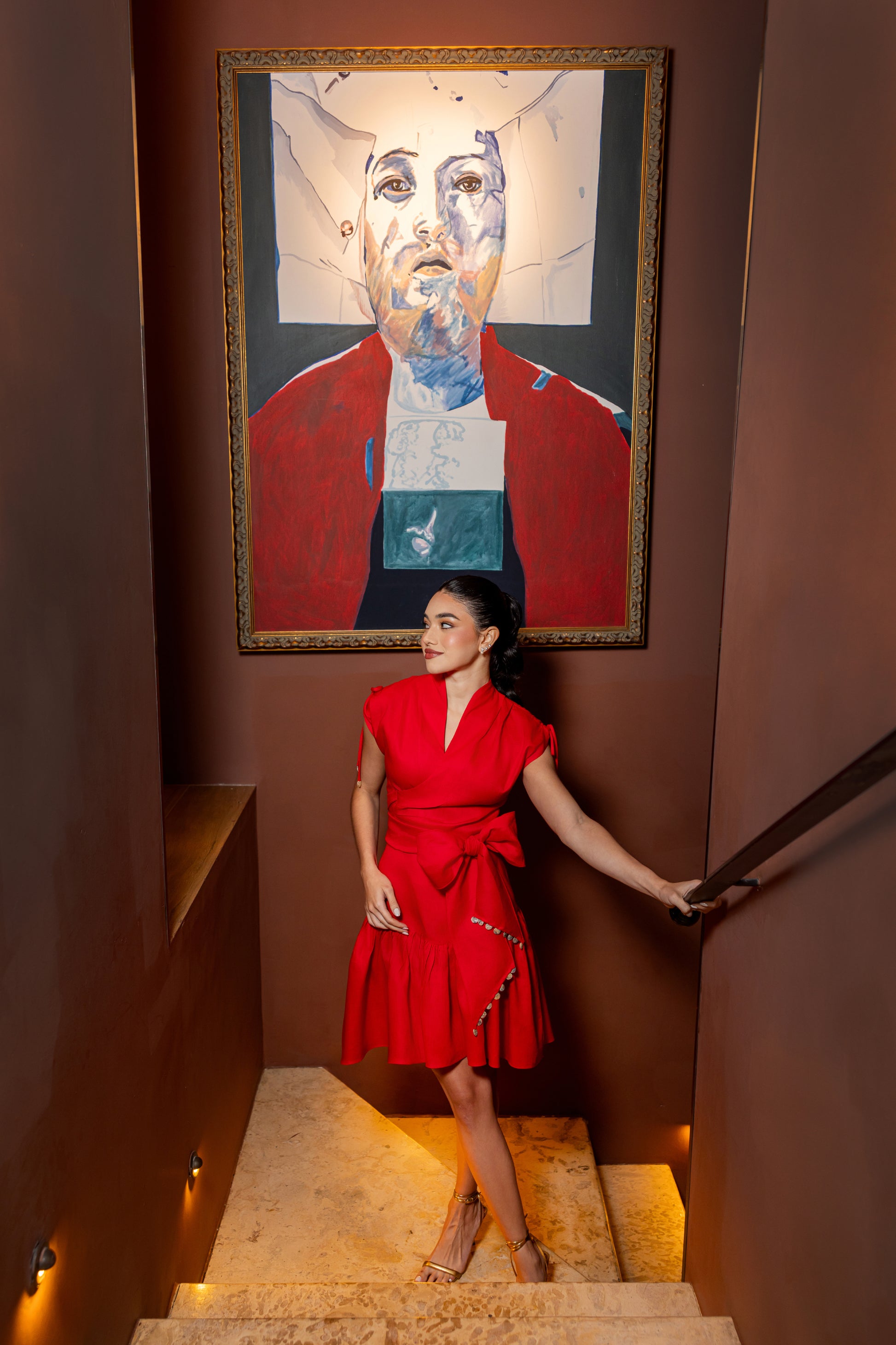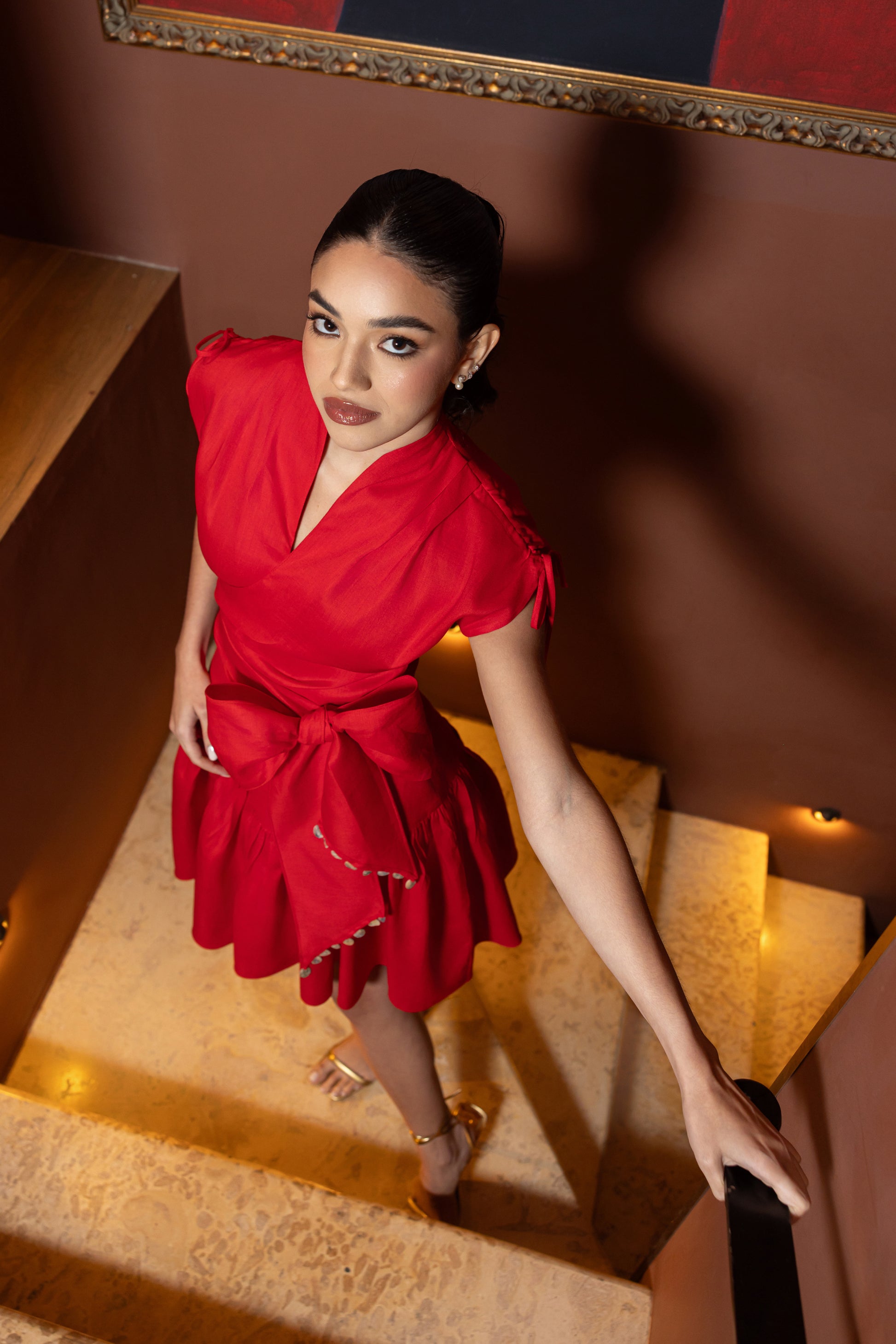 Elegant flared skirt with subtle side detailing for a refined, feminine finish. The knee-length cut enhances its versatility, making it perfect for both refined daytime events and elevated evening occasions. Feminine, dynamic, and timeless.